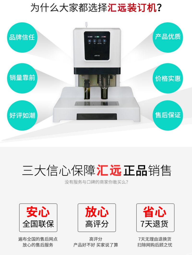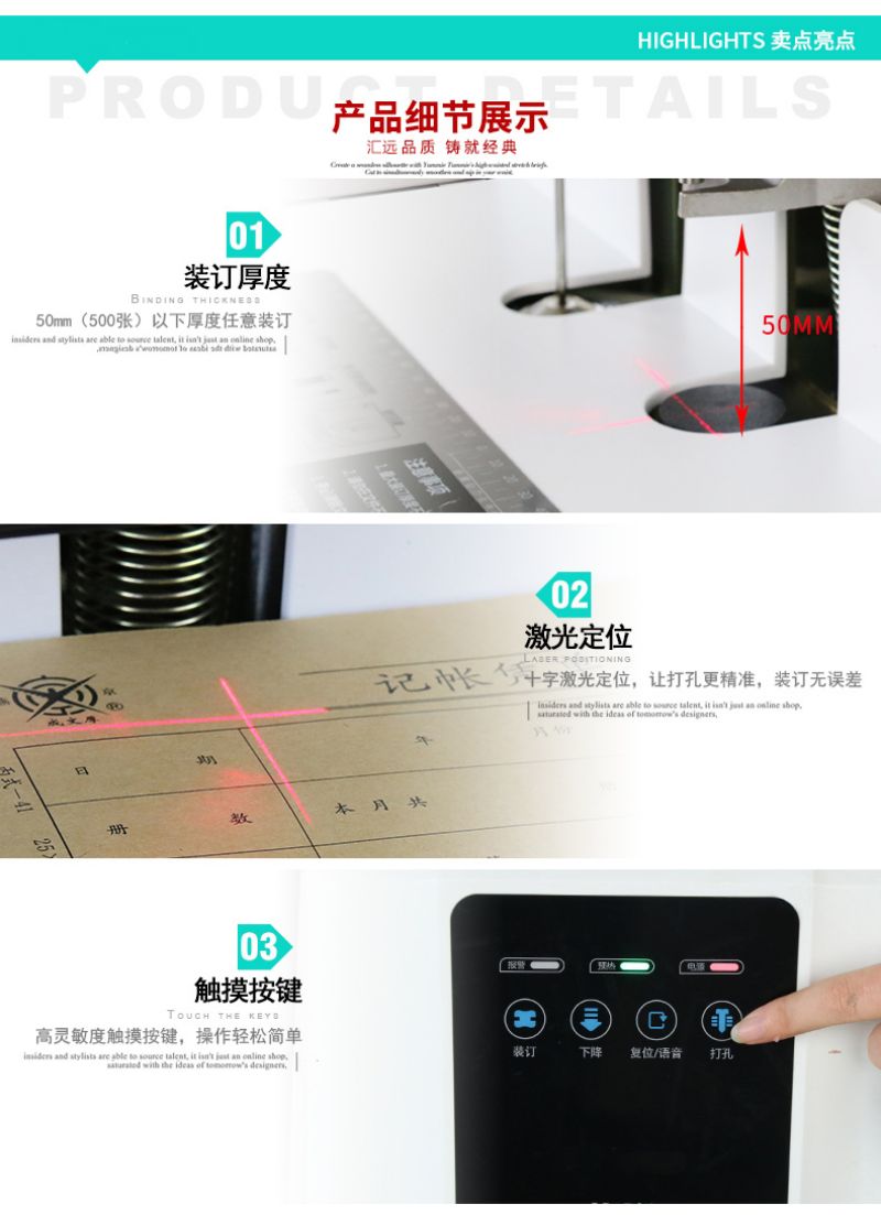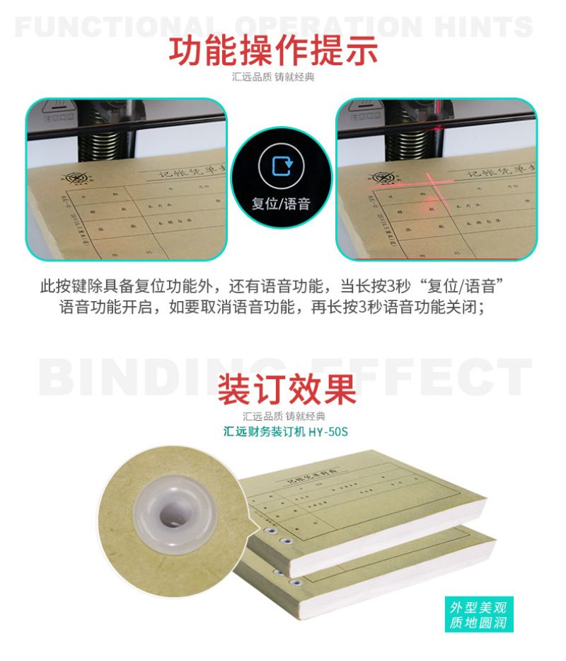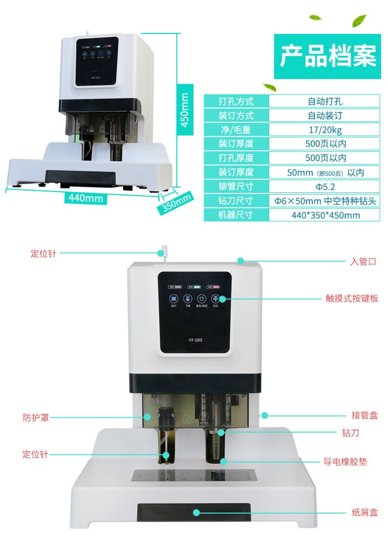 汇远自动档案凭证触摸式装订机HY-50S 自动打孔、自动装订、装订厚度50MM